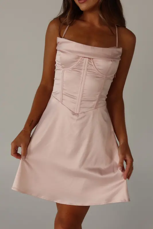 Elevate your style with the Kelsea Satin Bustier Mini Dress. This stunning dress features a luxurious satin fabric that glides effortlessly over your curves, creating a sleek and elegant silhouette. The lace-up back detail allows the straps to be adjustable, ensuring a perfect fit for any body type. Ideal for special occasions or a night out, this dress combines sophistication and allure.