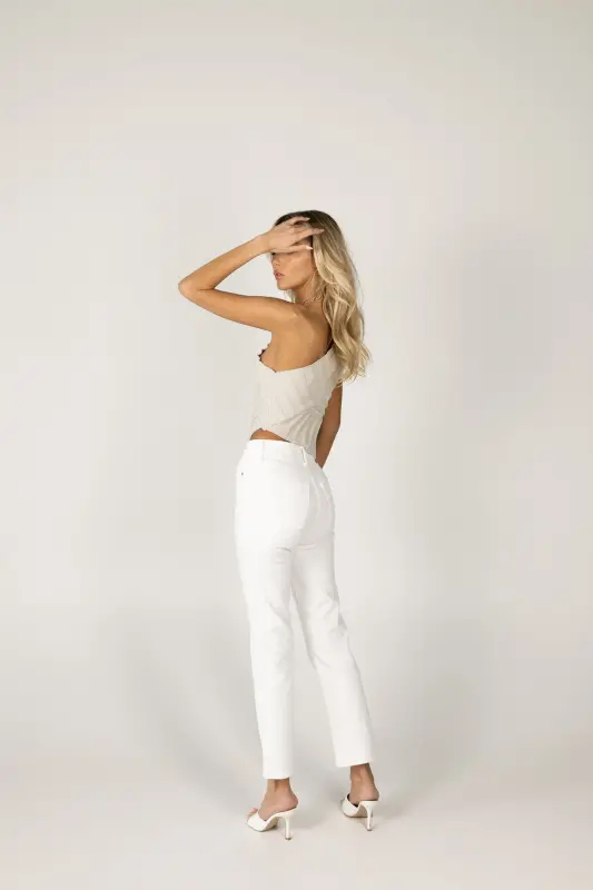 Introducing our White High Rise Straight Jeans, crafted in a pristine white denim wash. With a 10" rise, 28" inseam, and 7" opening, these jeans offer a timeless straight-leg silhouette that's both flattering and versatile. Designed with a touch of stretch for all-day comfort, they're the perfect choice for effortlessly chic everyday wear.